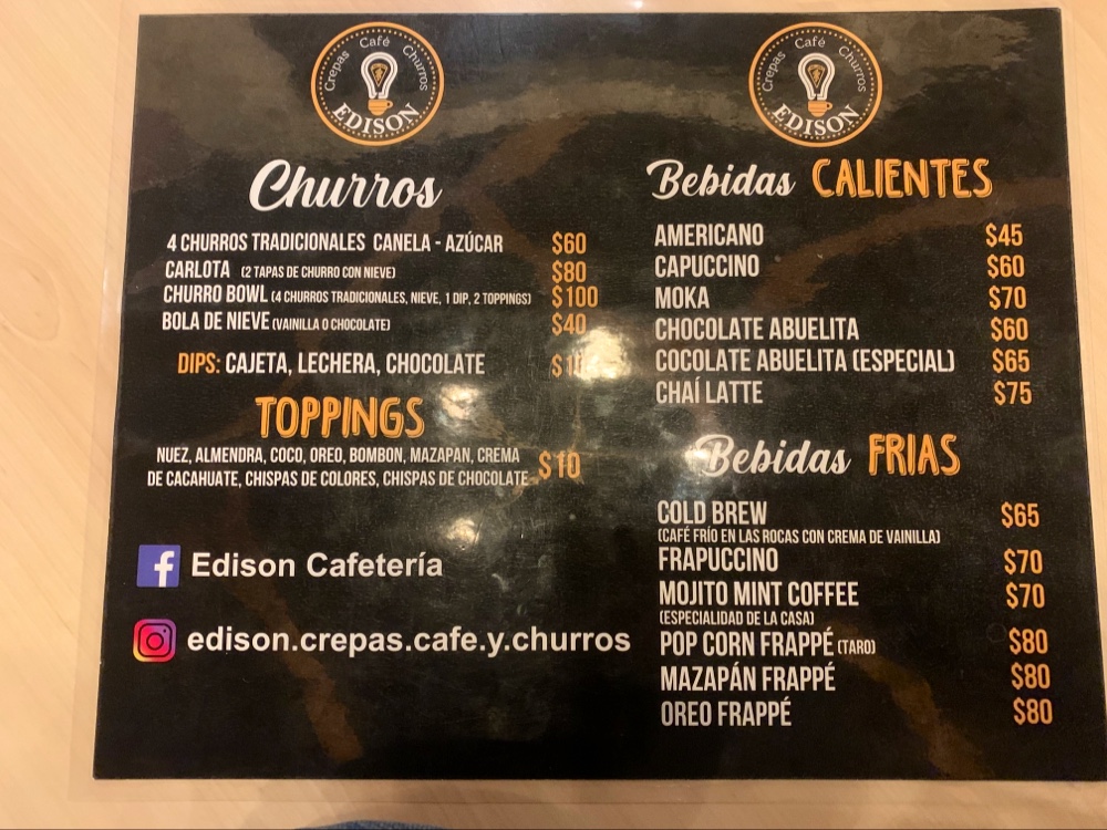 The menu at Edison is a treasure trove for sweet tooth enthusiasts and coffee lovers alike. While they may have discontinued their churros, customers rave about their delectable crepes, particularly the crepas de gloria brimming with rich Nutella and crunchy walnuts. The bowls of churros, paired with a scoop of ice cream, are a highlight, bringing comfort and joy in every bite. And let’s not overlook their heavenly cappuccino, which has garnered significant praise for its richness and depth of flavor. Each sip feels like a warm embrace, making it the perfect companion to a sweet treat.